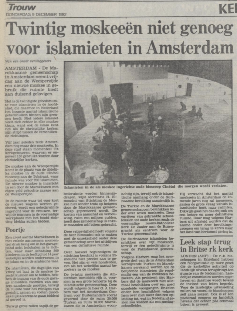 Met de komst van Marokkaanse migranten naar Nederland ontstond al snel de behoefte aan gebedsruimtes en moskeeën. In de beginjaren vonden gebedsbijeenkomsten plaats in huizen, pensions en bedrijfspanden. Voor speciale gelegenheden, zoals de vastenmaand of het Offerfeest, werden schoollokalen of ruimtes in wijkcentra gehuurd. Deze initiatieven legden de basis voor de latere oprichting van moskeeën en islamitische gemeenschappen in Nederland.